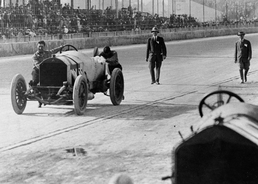 Few scenes across the decades of the Indianapolis 500’s history would more greatly move those that witnessed it than what happened just 3 miles short of the finish at the 1912 race. After leading 196 laps and holding a five-lap lead with 10 miles to go, Ralph De Palma’s Mercedes began hammering itself to death with a broken piston rod.