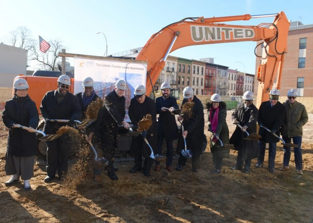 Our Lady of Loreto, a Romanesque-style Catholic church, stood at the corner of Sackman and Pacific Streets in Brooklyn for 110 years until 2018, when it was demolished due to extreme disrepair. Today, the consecrated land where it stood now has a rebirth of sorts, as Catholic Charities of Brooklyn and Queens and their partners prepare to construct a $48 million, eight-story, 135-apartment complex to house low income and homeless senior citizens – the Catholic Charities Loreto Apartments.