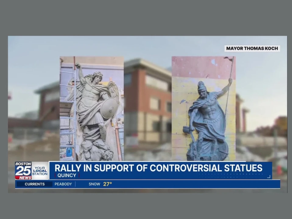 Quincy Mayor Thomas Koch commissioned the statues of Michael and Florian to honor Quincy’s first responders. 15 plaintiffs, represented by the ACLU of Massachusetts, sued to stop the statues from going up.