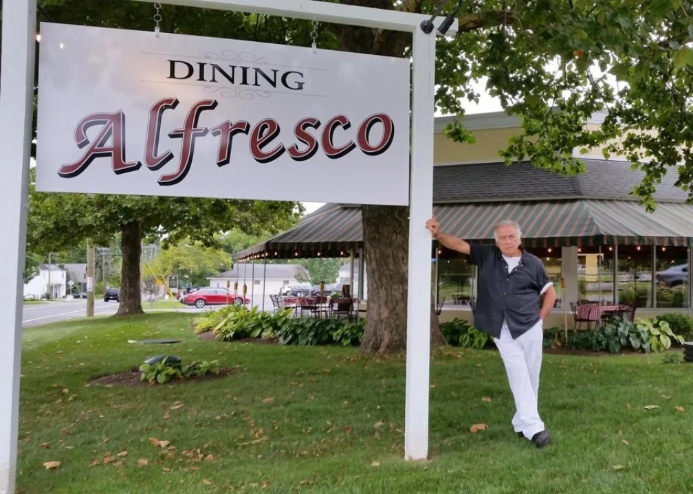 The new Italian restaurant Dining Alfresco at 10 Gay St. in the corner of the Sharon Shopping Center gets its name from the quintessential Italian phrase, evoking images of enjoying a meal under blue skies, watching the play of sun and shadow as you dine. “You have magnificent trees and shading, plus the huge awning outside,” said owner and chef Adriano DiMario, of New Milford, of his restaurant’s own al fresco area. “A lot of people eat outside.”