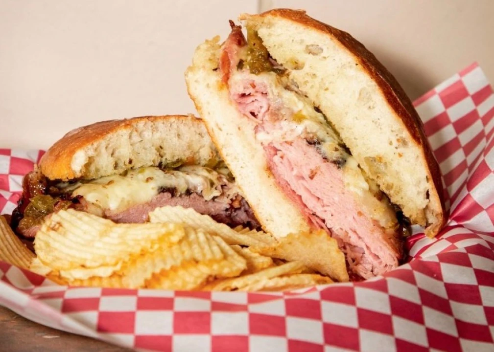 Served on a crackly round of house-baked bread, layered with ham, salami, roast beef, provolone, and mozzarella, the muffuletta at Valle’s in Memphis is a baroque and sloppy beauty, leaking oil and vinegar and joy.