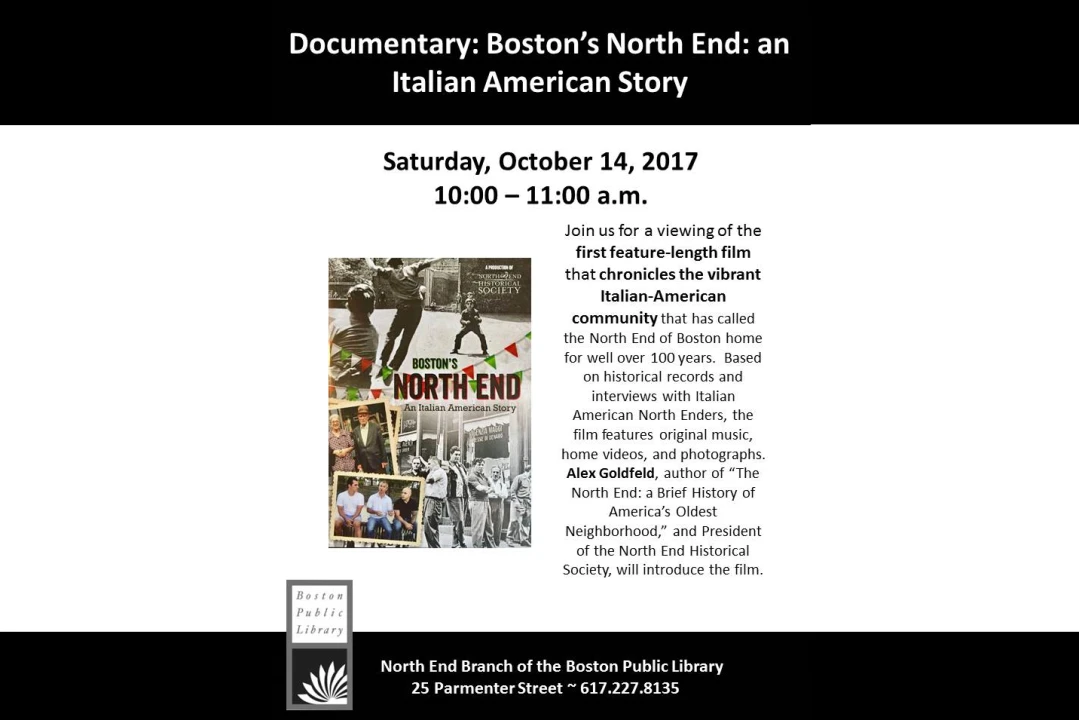 Join us for a viewing of the first feature-length film that chronicles the vibrant Italian-American community that has called the North End of Boston home for well over 100 years. Based on historical records and interviews with Italian American North Enders, the film features original music, home videos, and photographs. Alex Goldfeld, author of “The North End: a Brief History of America’s Oldest Neighborhood,” and President of the North End Historical Society, will introduce the film.