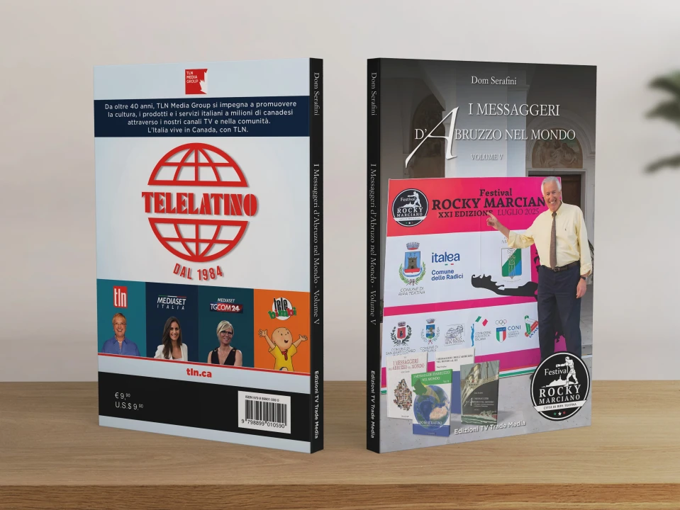This edition of The Messengers of Abruzzo in the World is sponsored by TLN, the Italian-language TV network in Canada. The 136-page volume, dedicated to notable Abruzzese individuals, is published by TV Trade Media and carries the official endorsement of the Rocky Marciano Festival.