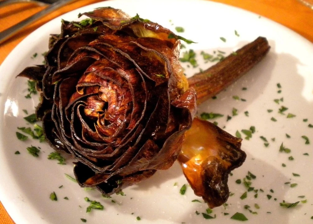 The Artichoke originating in the Mediterranean region, is commonly used in Italian dishes such as salad, pizza, and pasta. Common preparations of the artichoke include roasted, grilled, pickled, and cooked Jewish-style. Otherwise known as carciofi alla giudia, the Jewish-style artichoke is a staple in Jewish-Roman cuisine.