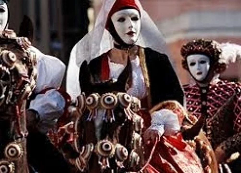 A Medieval equestrian tournament called "Sa Sartiglia" takes place every year in Oristano (Sardinia, Italy) on the last Sunday and Tuesday of Carnival and it is regarded as one of the most fascinating and old Italian Carnival traditions. Sa Sartiglia has its own leader "Su Componidori" and over hundred of riders dressed in colorful traditional Sardinian costumes who wearing a mask try to pierce with a sword a silver star hung along the way in the heart of Oristano old town. Its origin is dated back to the Spanish domination of Sardinia around 1546. Two Guilds of "the peasants" and "the carpenters" organize Sa Sartiglia but only Su Componidori decides which riders can run in the attempt to pierce the star.