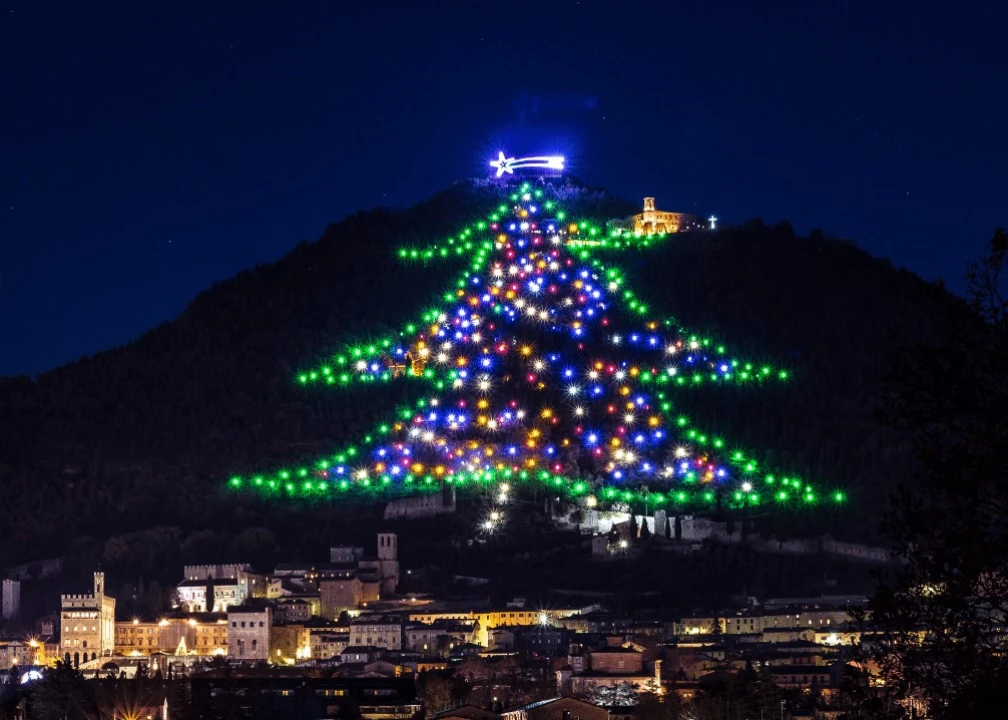 Circa quattro mesi di lavoro e l’impegno di tutta Gubbio con i suoi Alberaioli. Nasce così l’albero di Natale più grande del mondo. Per il 39esimo anno, sul monte Igino si è accesa l’indistinguibile sagoma formata da centinaia di lampadine: per l’esattezza 950.
