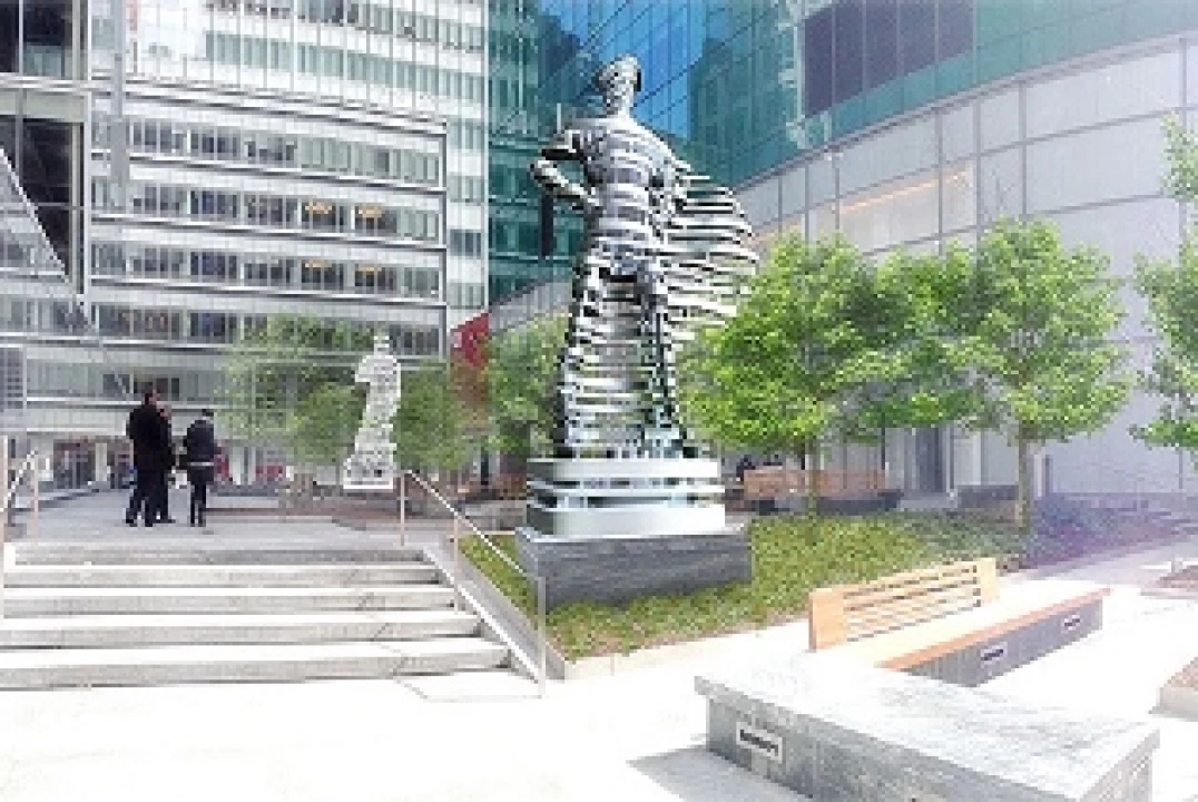 The Guardians represent two symbolic protectors of New York City and incorporate the designer's overarching aim to combine digitally generated architectural compositions with a powerful, timeless message of resiliency and innovation. Hero, a 8,000-pound marble reinterpretation of Michelangelo's David, defender of the city of Florence, and its counterpart, Superhero, a 15,000-pound stainless steel icon of the present, are positioned at the north and south ends of the public plaza at 1095 Avenue of the Americas at Bryant Park between 41st and 42nd Streets. Eni is proud to support The Guardians, which will remain on view indefinitely, creating a new landmark in the center of Manhattan.