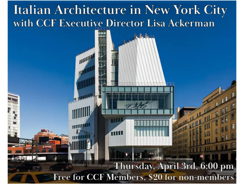 CCF Executive Director Lisa Ackerman is exited to share these treasured sites with you from the works of McKim Mead & White to Renzo Piano, Giuseppe Amato, and Antonio Pio Saracino, spanning building types from the humble to the grand, the residential to the monumental.