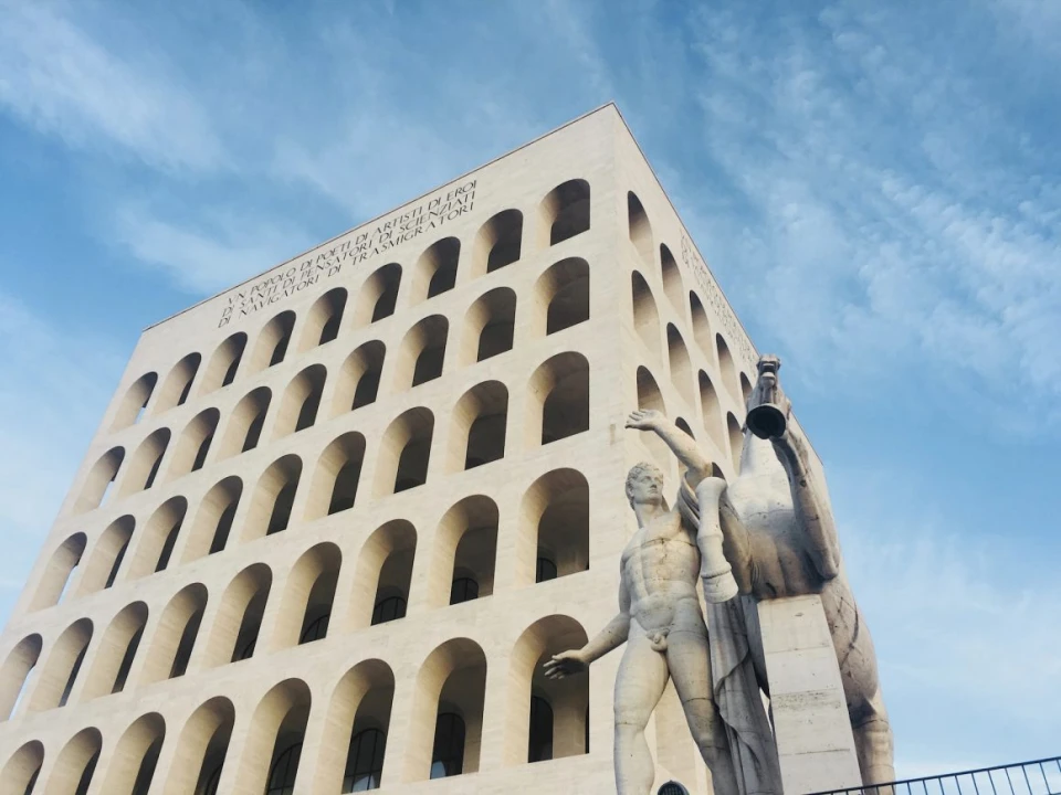 Construction for the project began in 1937 under Mussolini’s instruction, meant to represent the new imperialist Rome under the Fascist party. It would serve to host the Universal Exhibition of Rome (the EUR acronym stands for Esposizione Universale di Roma) in 1942, coinciding with the 20th anniversary of Mussolini’s March on Rome, but plans were scrapped with the outbreak of World War II and Mussolini’s subsequent defeat.