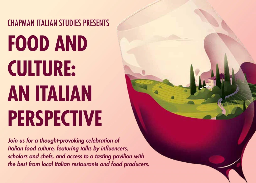 Organized by the Italian Studies Program at Chapman University, the Food and Culture event will be the Þfth in the annual Italian Perspective Series. Scheduled for April 4, 2020, 10 am -2 pm, the event will take place at the state-of-the-art theater hall The Musco Center of the Arts.