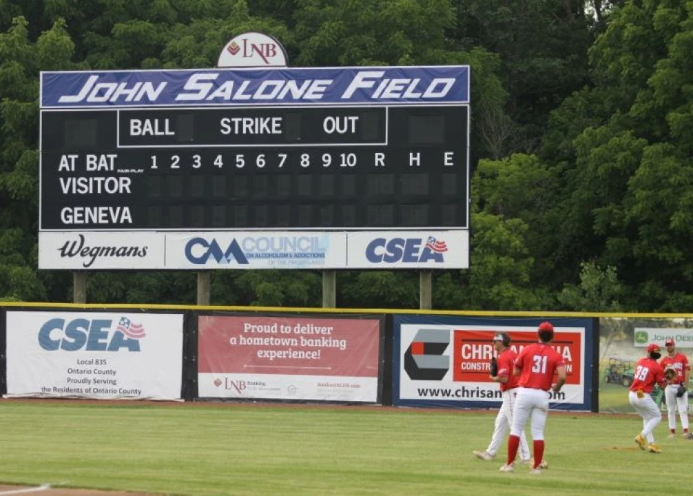 The Geneva Red Wings held a special ceremony Thursday night to pay tribute to their late groundskeeper John Salone. McDonough Park’s field is now “John Salone Field” as fans will notice atop the scoreboard. Salone, a community figure and a 1974 De Sales High School graduate, passed away last August at the age of 66.