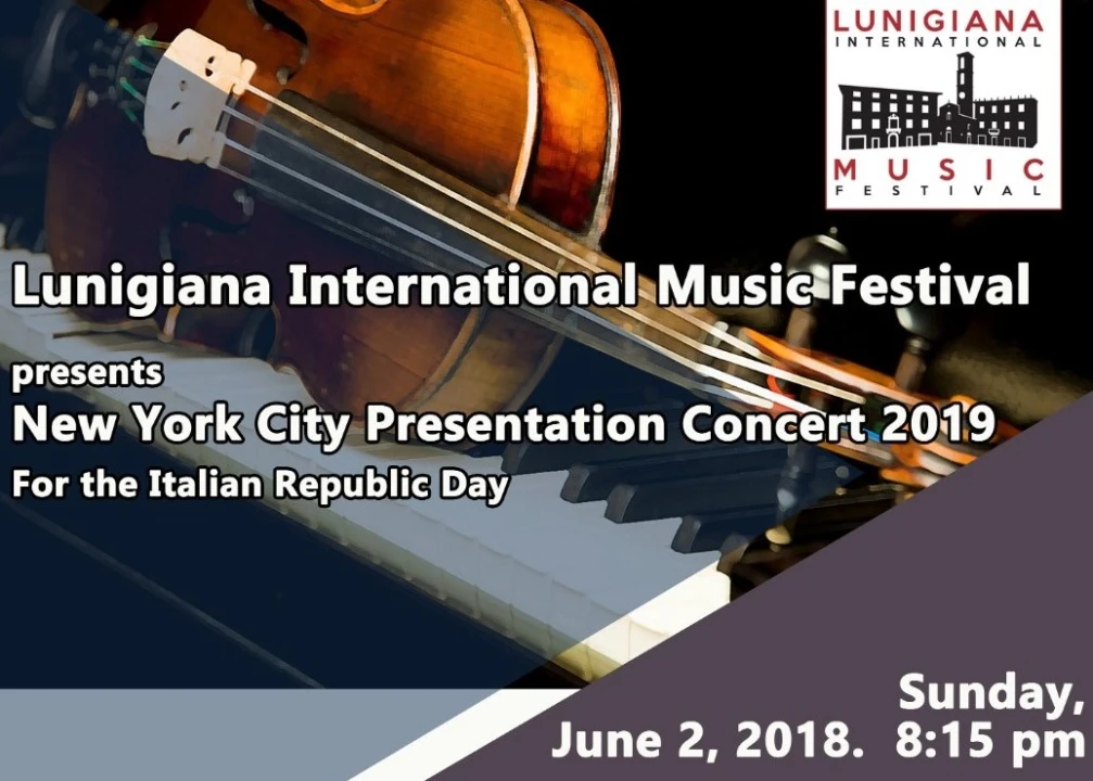 Domenica 2 giugno, in occasione della Festa della Repubblica, a New York presso Saint John's-in-the-Village Church (224 Waverly Pl, New York) si terrà la presentazione americana della seconda edizione del “Lunigiana International Music Festival” che si svolgerà a Fivizzano (MS) dal 18 al 28 luglio 2019.