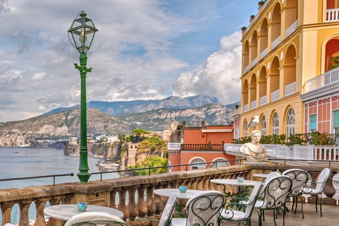 If you were to hand God a blank canvas and ask him to paint the Italian idyll, you would get something like Sorrento. Sitting astride cliffs that plunge down to the brilliant-blue Bay of Naples and at the gateway to the fabled Amalfi Coast, this glam coastal town has got it all going on–a historic center brimming with pastel-painted palazzi, flower-wreathed villas, and roads twisting vertiginously down to a marina where the irresistible tang of freshly grilled seafood hangs on the sea breeze.