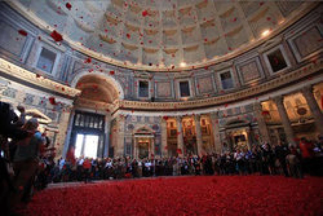 This May 24, red rose petals will rain from the "eye in the sky" of Rome's Pantheon, meant to symbolize the tongues of fire in one of the most famous episodes in the "Acts of the Apostles". The disciples and Mary were in Jerusalem, having dinner together (probably in the home of Mark's mother).