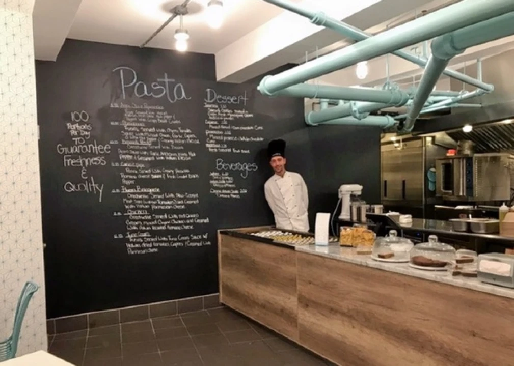 Customers can peek into the kitchen's open floor plan, where the chef prepares each meal right in front of guests. But unlike many fast-casual spots, there are no customizable variations on the menu. "You can't customize your pasta, you can't build your own," a statement on the website reads. "Because we want to show you a real, authentic Italian kitchen."