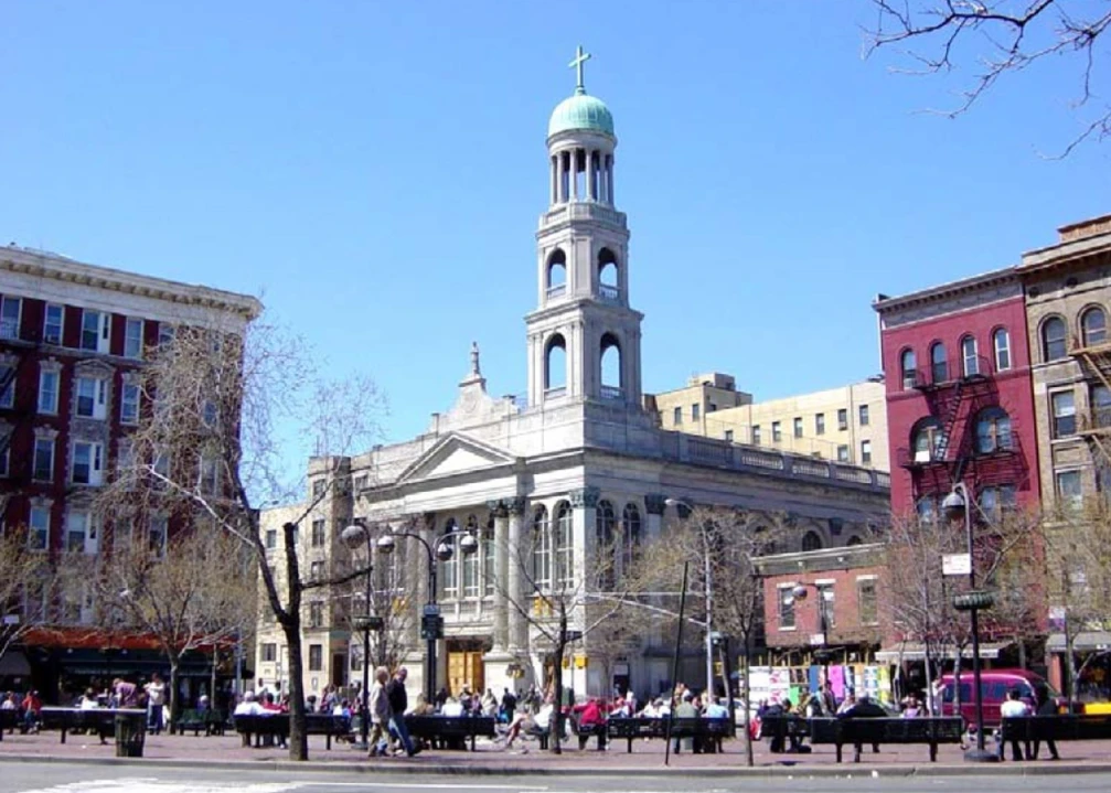 The Our Lady of Pompeii church that stands today was designed by architect Matthew W. Del Gaudio and constructed between 1926 and 1928. But the parish had several prior homes. In 1890, it began in a building located at 113 Waverly Place, as part of the Saint Raphael Society for the Protection of Italian Immigrants, under the leadership of Father Pietro Bandini. Father Bandini named his chapel there “Our Lady of Pompeii.”