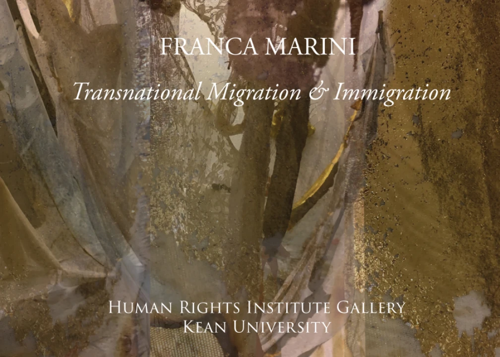 Italian artist Franca Marini exhibits her work titled Transnational Migration and Immigration at Kean University's Human Rights Institute from Feb. 1, 2018 to June 20, 2018.  This specific work was inspired by the refugee crisis in Italy. It challenges attendees to rethink how they judge and accept others by symbolically showing both the outer and inner journey of refugees through the use of strategically placed cloths.
