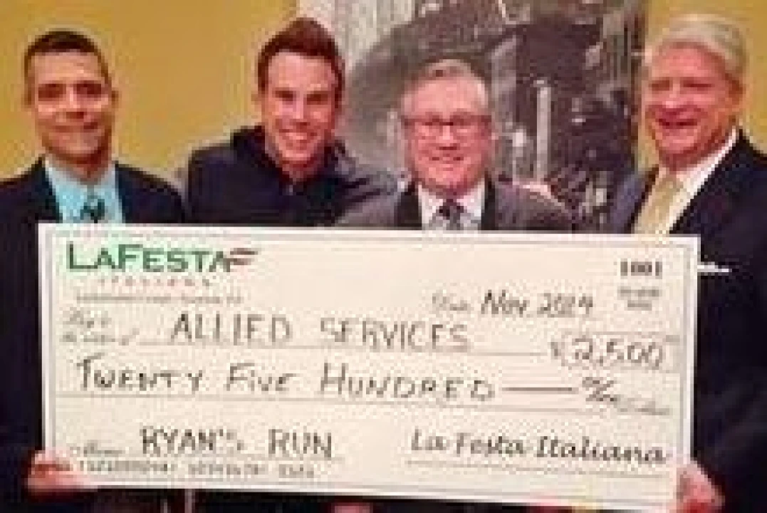 The funds were raised during La Festa Italiana as part of joint initiative by La Festa, Carl Von Luger and Banko Beverage. The donation will benefit the Ryan's Run 5 campaign and children and adults with disabilities at Allied Services.