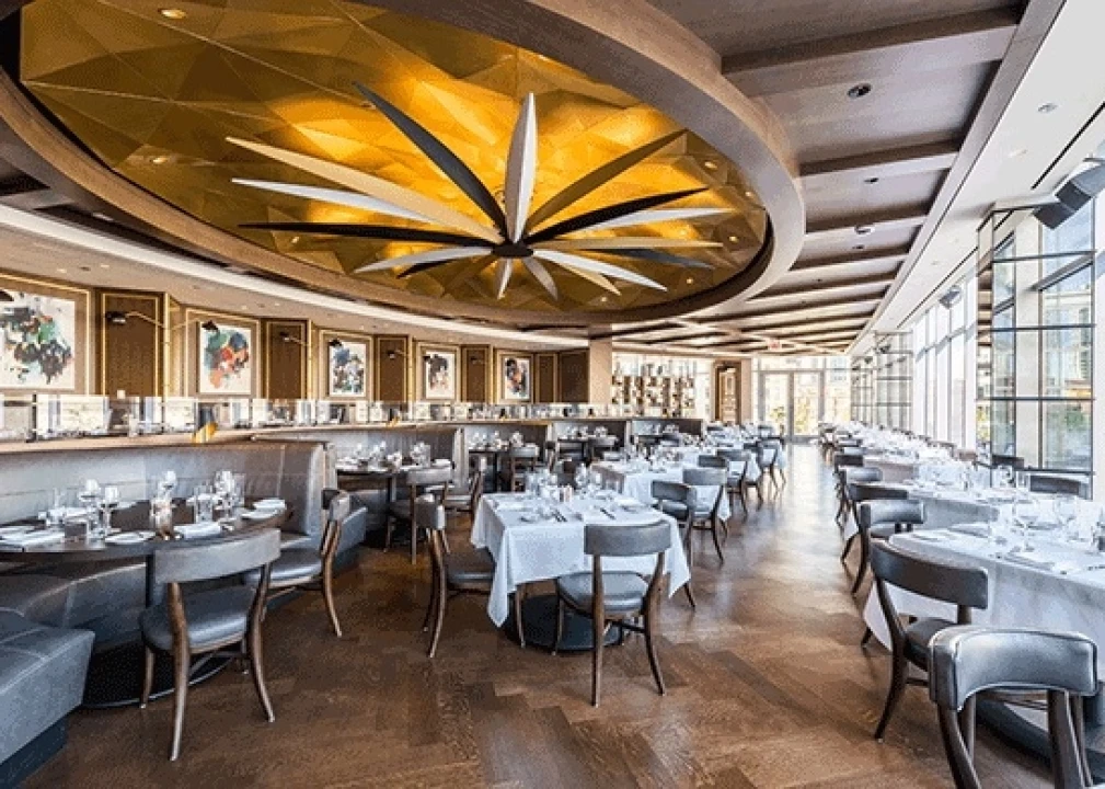 ZWA led a design team that included local practice Antunovich Associates and Deerfield, Illinois-based Knauer. The Milan-inspired eatery is adorned with a sophisticated midcentury-style aesthetic evocative of Chicago. White marble tables and gray leather chairs populate the dining room, modeled to resemble the desk chair used in the office of racecar entrepreneur Enzo Ferrari.