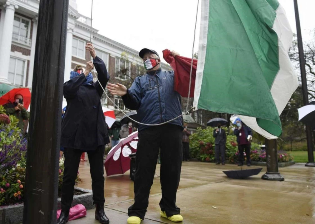 The tradition of the flag-raising and salute goes back more than 30 years in town, but the St. Lawrence Society decided to mix it up for 2020, society President Tod Laudonia said. Usually, the honoree is an Italian-American citizen. While neither shares that heritage, Peter and Bea Crumbine have made enormous contributions to the town through politics and culture, Laudonia said.