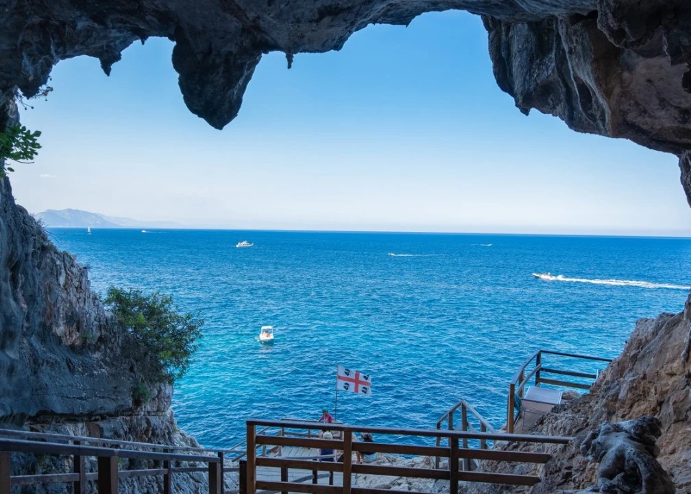 This 800,000-year-old coastal cave system, which winds through a sheer limestone cliff looking out onto the Tyrrhenian Sea, is only distinguished by a wooden staircase protruding from its mouth, 30 feet above sea level. It’s a beacon to all speleophiles, the geologically inclined, or anyone looking to beat the heat, if only temporarily.