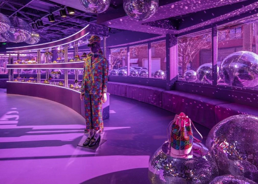 The high-end Italian fashion and accessory company, Gucci, has set up a pop-up shop in Chicago, Illinois to help bring in the fun for NBA’s All-Star Weekend. The shop took some time to construct, but it was worth the wait when the doors opened. According to Gucci, the shop is “a dreamscape of nocturnal refractions and reflections, taking us into a fantastical night club where visitors are welcome to join the party.”