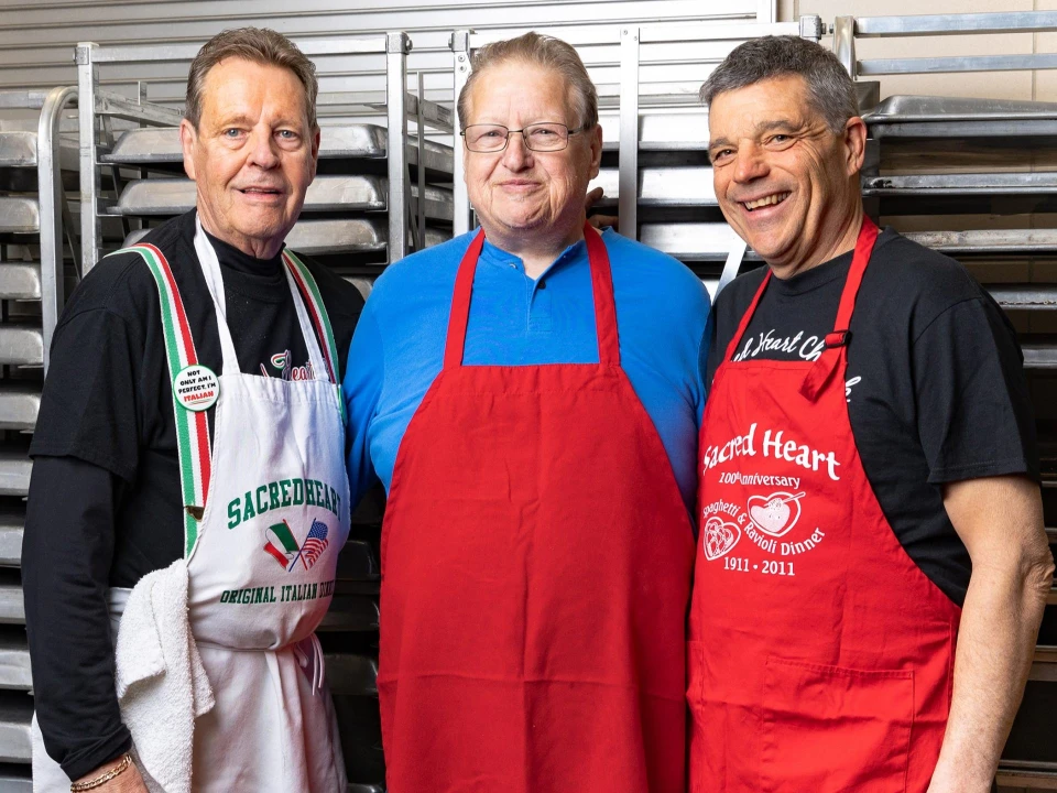 The Italian dinner at Sacred Heart Church in Camp Washington, in other words, is a Cincinnati tradition with a capital T, serving 210,000 ravioli, 23,000 meatballs, and 600 gallons of sauce to some 2,000 diners and 3,000 carryout customers at its peak. An army of sauce stirrers, meatball makers, and ravioli chefs worked the kitchen into their 80s and beyond.