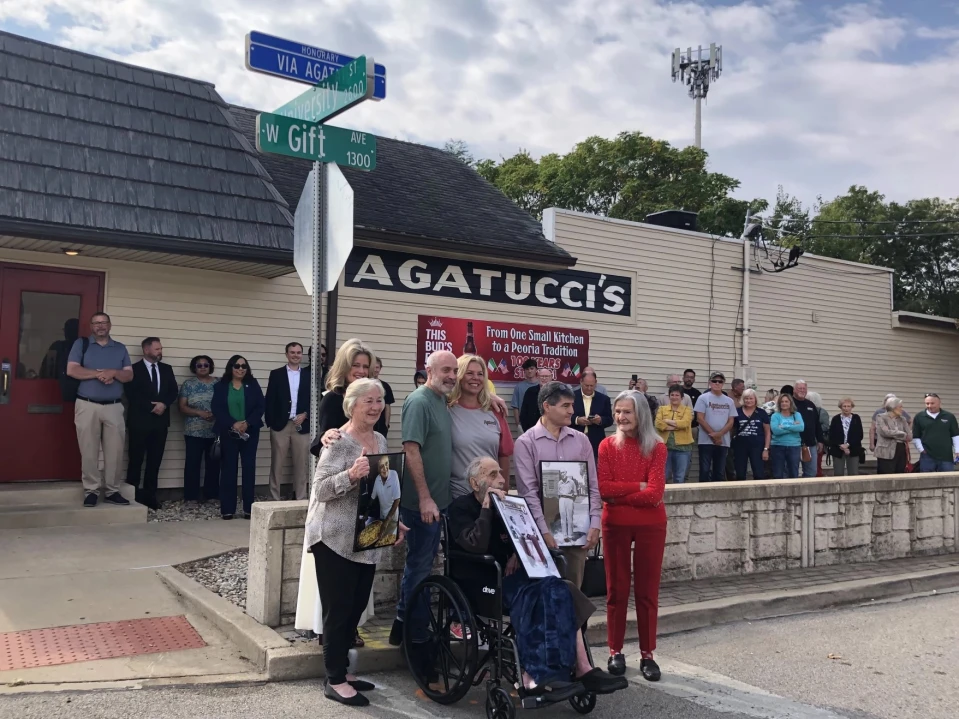 A well-known, family-operated Peoria bar and pizzeria is celebrating 100 years in business, complete with a special anniversary logo and an honorary street designation from the city. Friends, family and fans of Agatucci’s Restaurant gathered Wednesday for a kickoff celebration at the eatery that originally opened as a grocery store in 1926 and has become what Mayor Rita Ali called “one of Peoria’s most beloved institutions.”