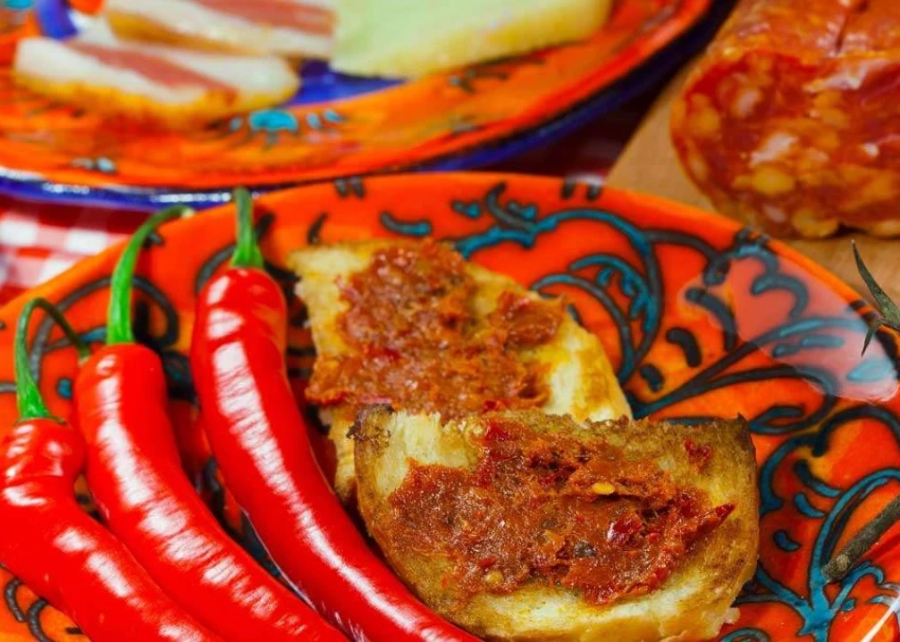 Between green mountains and crystal clear sea, the region of Calabria offers a plethora of unique delicacies, including ‘nduja, a curious spreadable deli meat, characterised by a bright red color and a fiery taste. Even if its origin is uncertain - maybe Spanish, because of the heavy use of chillies imported from the Americas, or possibly Medieval, but with a different recipe - we have good information about its name, which is definitely French in origin. Indeed, the French word andouille is used to indicate all preparations typical of salumeria.