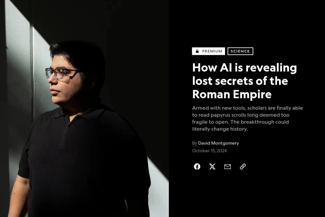 In the spring of 2023, as he drove to his SpaceX internship in Starbase, Texas, a college student named Luke Farritor found himself riveted by a podcast. The hosts were describing a competition with an audacious goal: to read a 2,000-year-old scroll without physically unrolling it.