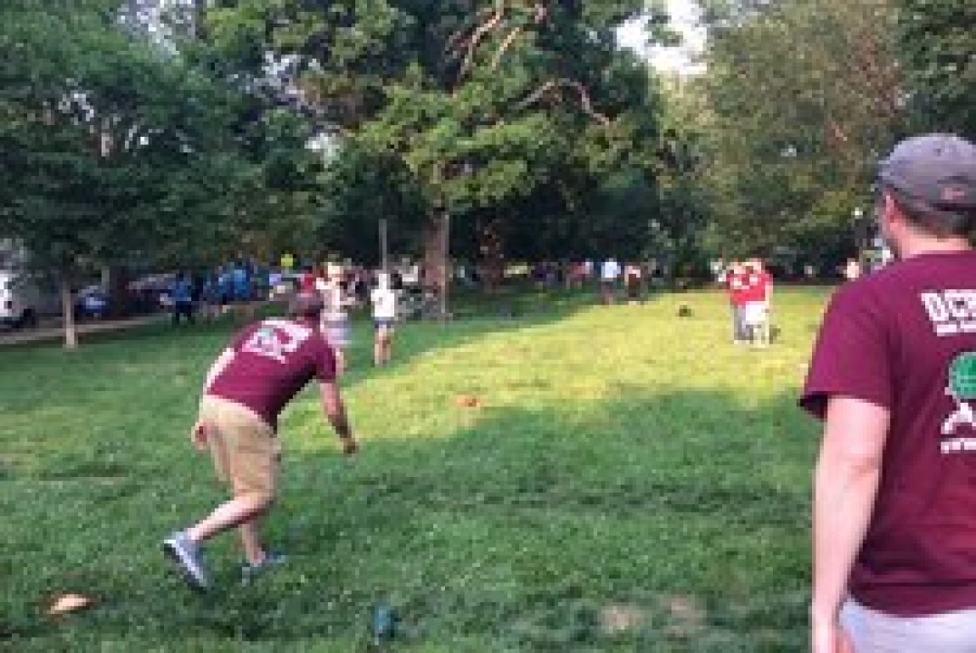 On the rooftop of an office building near the Verizon Center in downtown D.C., a group of politicians and lobbyists gathers for the Third Annual Congressional Bocce Tournament. The scene is what you might expect — a stately, convivial affair with more pomp than competition, forced inside due to stormy weather for the third consecutive year.