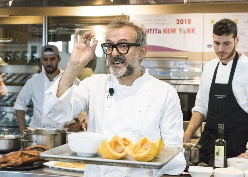 "With Parmigiano you can do everything! It is the most amazing cheese." Bottura said after leading a cooking masterclass at New York City's Eataly for the annual Identita Golose festival." His preferred parmesan is aged for (at least) twenty-four months, especially because the two-year aging time turns all the lactose into protein, making the cheese easier to digest, even if you're lactose intolerant.