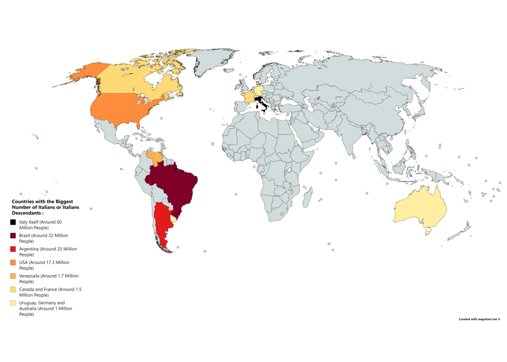 2. Brazil has 32 million of Italian heritage, or 15% of its total population