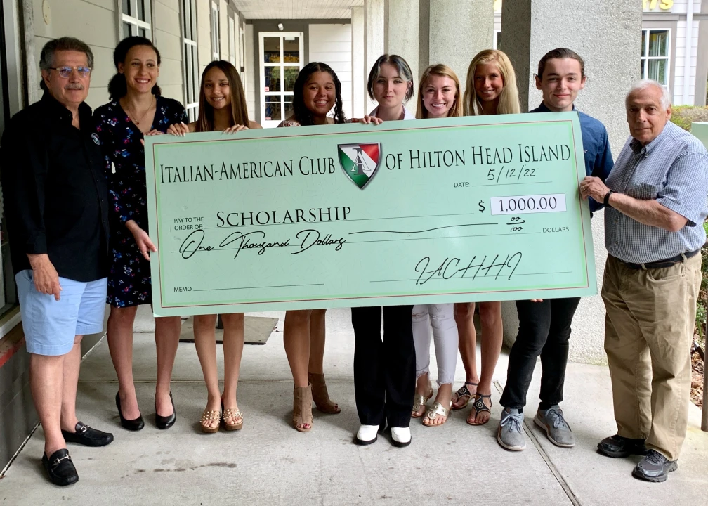 The Italian American Club of Hilton Head (IACHH) has been awarding scholarships to local graduating high school students for more than twenty-five years. Each recipient receives $1,000 towards their college expenses for the following year at college. The checks are awarded at a special luncheon hosted by the IACHH, where Club members get to meet and congratulate the students.