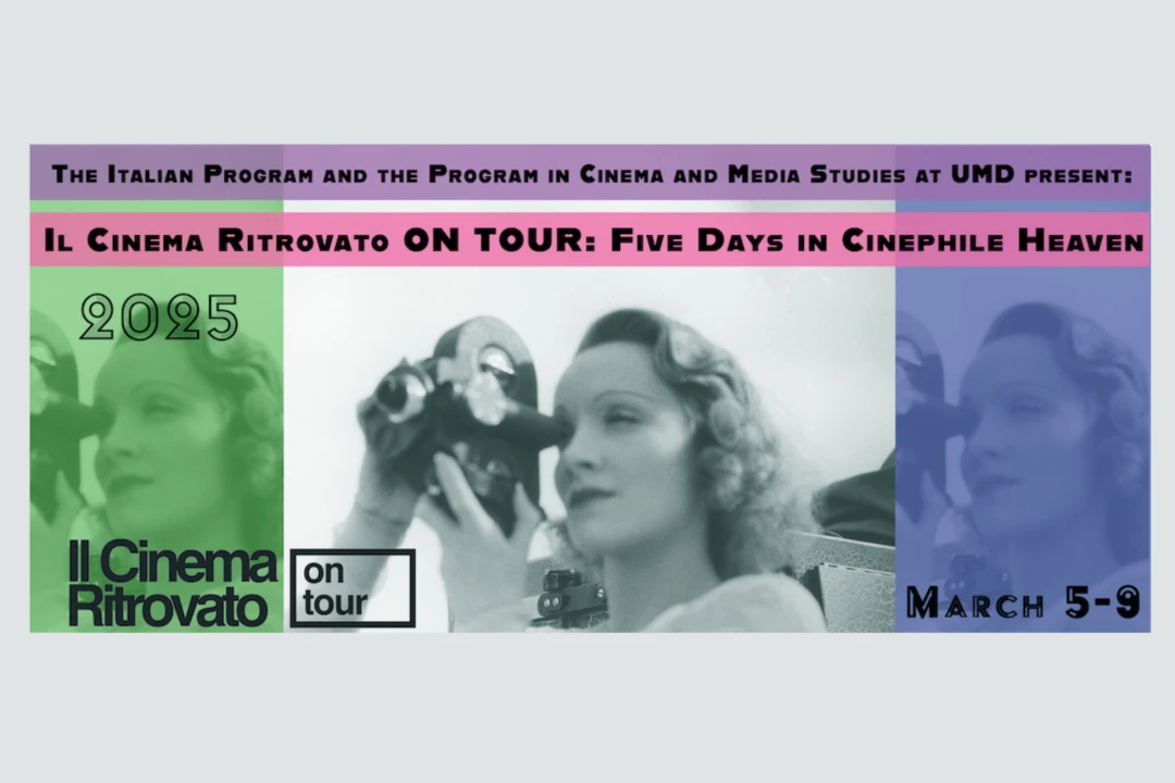 Il Cinema Ritrovato on Tour, a five-day cinephile festival, is scheduled to start on March 5, 2025, and run through March 9, 2025. The event is organized by the Italian Program and the Program in Cinema and Media Studies at the University of Maryland, College Park. The Festival co sponsored by the Italian Cultural Institute of Washington and presented in partnership with the Bologna Film Archive, Italy (Cineteca di Bologna), AFI Silver Theatre and Cultural Center, and the National Gallery of Art.