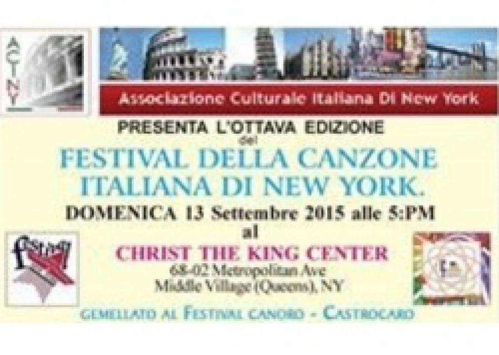 Il Festival della Canzone Italiana di New York giunge quest'anno alla sua ottava edizione, che si terrà, come nell'ultima occasione, domenica 13 settembre 2015 presso il prestigioso teatro all'interno del Christ The King Center di New York. Il Festival, nato dall'iniziativa dell'Associazione Culturale Italiana di New York, ha rappresentato fin dalle sue origini, un veicolo per la promozione della cultura italiana e l'interscambio culturale fra Stati Uniti e Italia, attraverso una delle più importanti e apprezzate forme d'arte del "Bel Paese": la musica.
