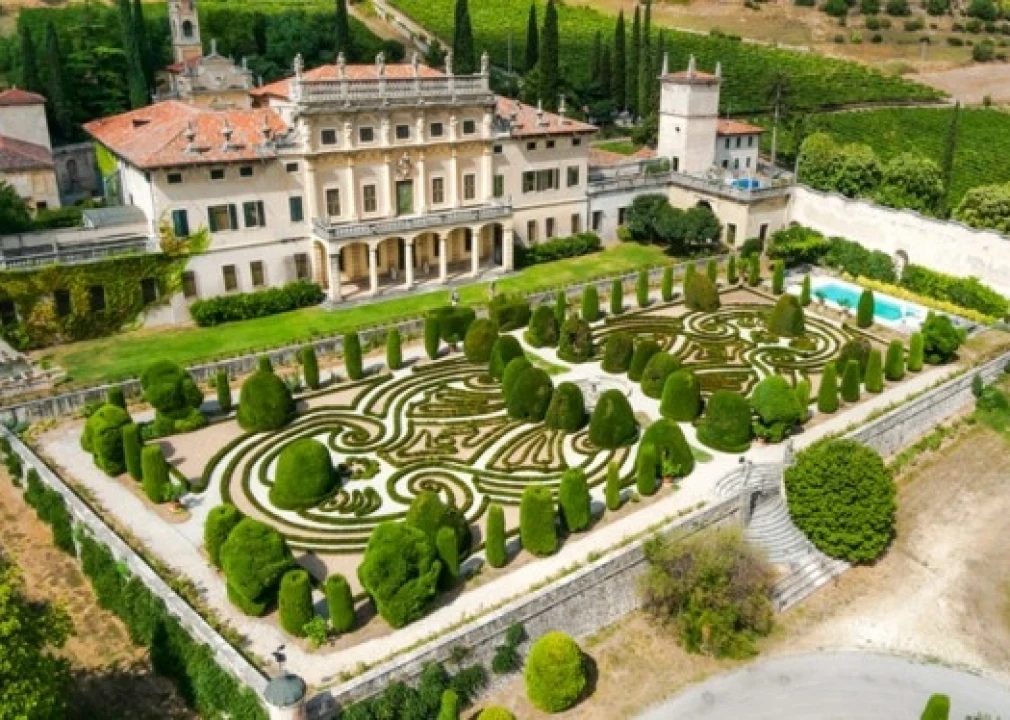 Inside Villa Arvedi, located in Grezzana, there is a beautiful Room of the Titans with frescoes by Ludovico Dorigny, who between 1717 and 1720 added a series of mythological figures within a pre-existing, complex painted framework, attributed almost certainly to Bologna-born Francesco Bibiena, master of trompe-l’œil and forced perspective.