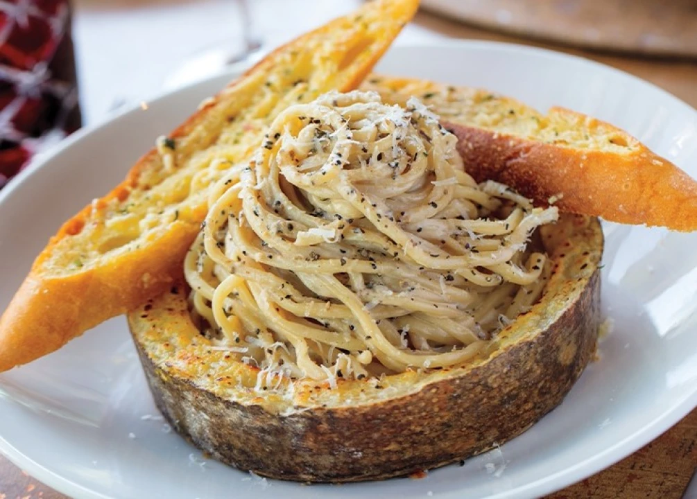 Steak and eggs features a flat iron steak, toast, lemon-smashed potatoes and salmoriglio, a condiment with lemon juice, olive oil and garlic, while the Sunrise Polenta Waffle is served with pancetta, béchamel sauce and two sunny-side up eggs. Salads, pastas and paninis are also available. And whatever your entrée might be, do order the pastry basket. The rosemary-Parmesan scone is practically perfect.