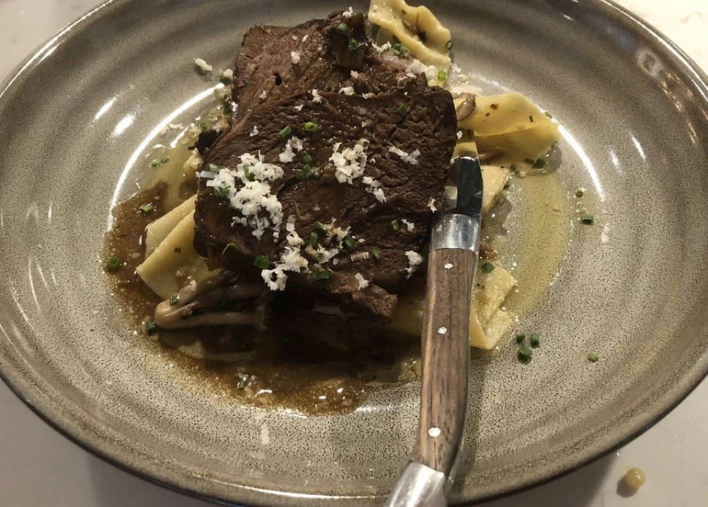 The warm and airy Gattara, however, boasts an interior heavy on bright walls, pop art, and big windows that feels right at home in the renovated hotel, which was once Denver’s Playboy Club. The most notable aspect of the decor, however, is the many artful details that depict or reference cats and lend a playful, quirky vibe to the space.