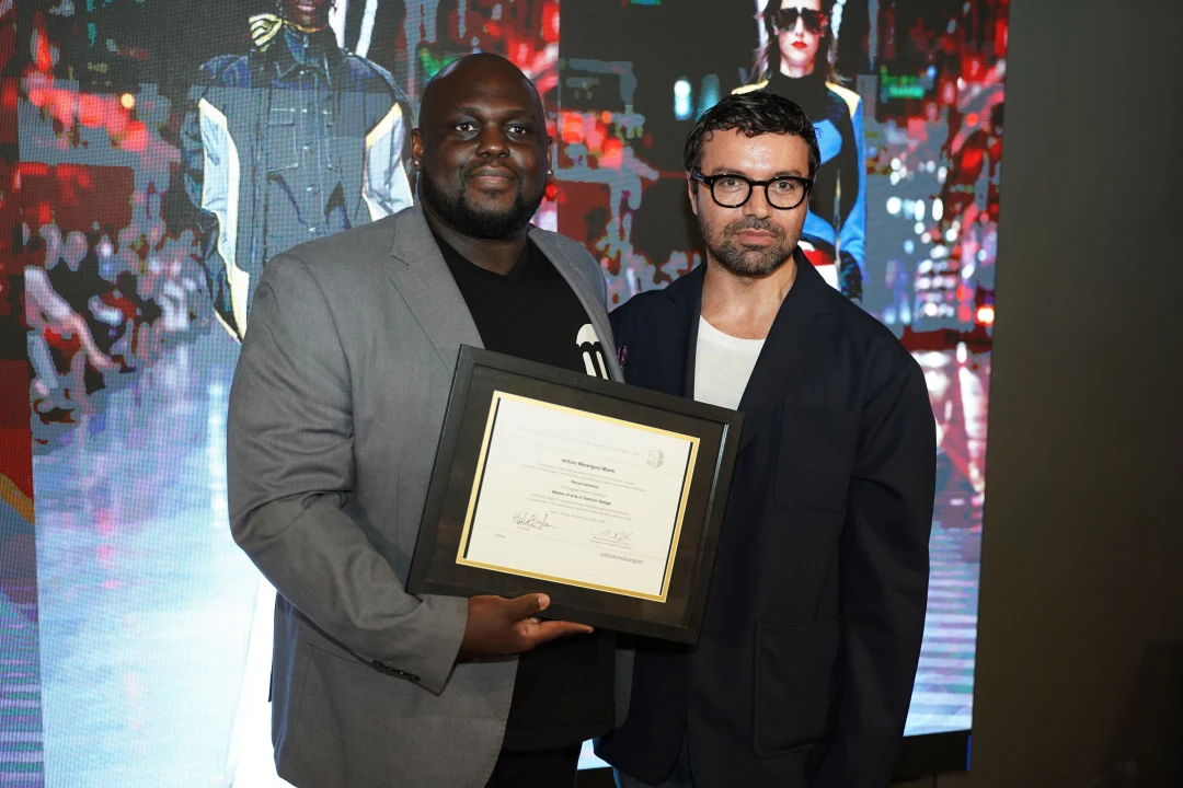 Once the conversation ended, Iannone was awarded with an Honorary Master’s Degree in Fashion Design by IMM’s VP of Academics Michael Allen Johnson for his outstanding work in the industry. A lively cocktail party was held on the school’s terrace with a sweeping view of the Miami Design District.