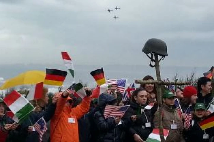 A small group of children from schools in Nettuno waved small American, British, Italian and – weird and wrong choice, according to me - German flags. A permanent monument will be built where the cross with the helmet is, in this historical place which reminds us the beginning of the five months battle that liberated this part of Italy and ended on June 4, 1944, with the liberation of Rome.