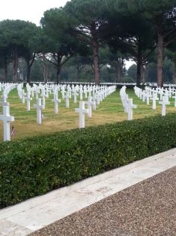 Many of them were of Italian heritage: when Japan attacked the US, on December 1941, they all of a sudden became enemies in America, because of the pact between Italy and Japan. They had to stop talking Italian and declaring their heritage, and some of them decided to lose the ending vowels of their family names. They were asked to choose between their country of origin and the one where they were living, and they chose America: but, far from disowning Italy, a huge percentage of them courageously enlisted in the US army and asked to be sent to Italy, to free the place they or their family came from, and to be able to help the army communicating with the Italians, who didn't speak English. In every row of the crosses in the cemetery you can find many Italian names. We had the honour and the privilege to meet there Senator Renato Turano, the Member of the Italian Senate elected among the Italian community in the US.