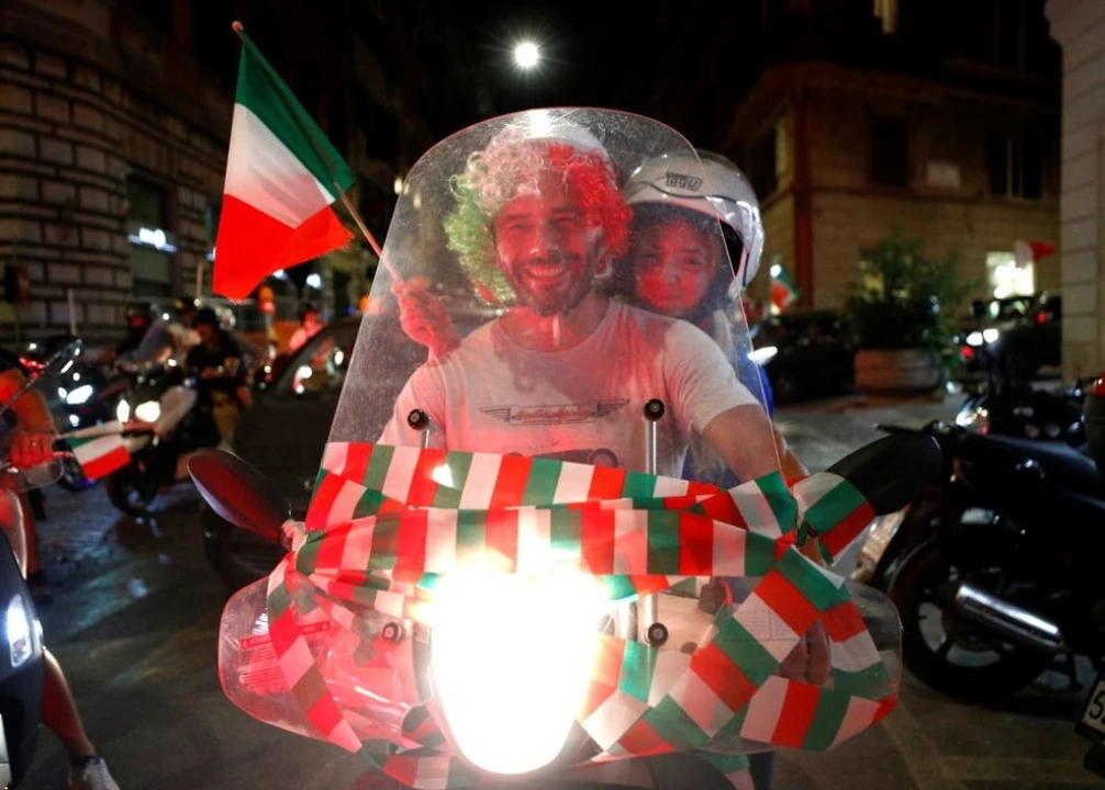 But in the capital, as across Italy, fans took to the streets to celebrate the Euro success against England. Fans waved flags and chanted football anthems, including Seven Nation Army, which the Italians have adopted as their unofficial anthem. People celebrated wildly, on top of trams, on scooters, and with flares.