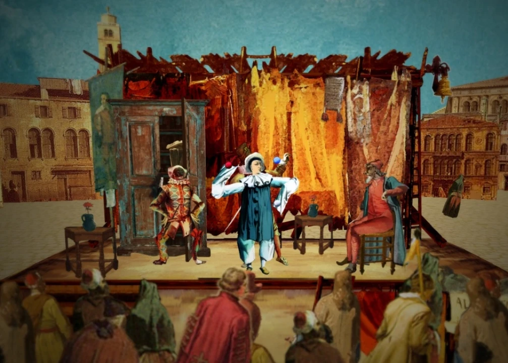 Written by Natalia Newman and starring the Italian actor and performer Andrea Galata, The Mystery at The Carnival -Il Mistero al Carnavale is an original Commedia dell'Arte play that follows the best traditions of the style, interlacing the plot of Colombina (Newman), Pierrot (Galata) and Alrecchino looking to solve a mystery charade, with a piano trio concert, and featuring opera singing, ballet dance and Venetian Carnival style costumes.