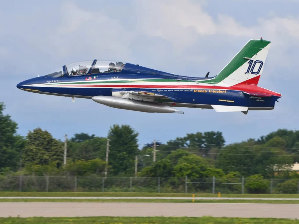 This year’s visit is the teams first time in the United States since 1992. The team operates the Aermacchi MB-339-A/PAN, a two-seat fighter-trainer craft. With a total of 10 aircraft as part of the display, the team is the largest aerobatic team in the world. Their display includes nine aircraft flying in formation and one solo aircraft performing loops, rolls and crossing maneuvers.
