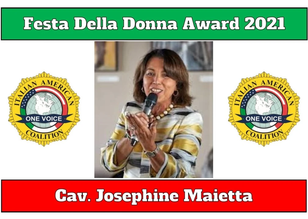 The Italian American ONE VOICE Coalition (“IAOVC”), America’s largest independent Italian American anti-bias organization, has selected Cav. Josephine Maietta for its “Festa Della Donna” Award for 2021.