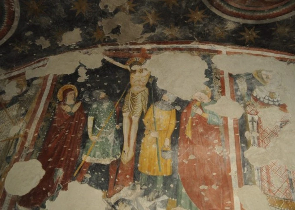 A small door along the wall of the sacristy leads to the staircase that goes down to some underground rooms already equipped. The first are two spectacular rooms covered with frescoes of the first half of the fourteenth century depicting stories of St. Michael the Archangel and St. John the Baptist and a Crucifixion likely work of the Gemona born Nicolò di Marcuccio, who contributed to the decoration of the cathedral.