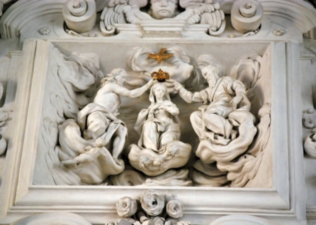 In the "Oratorio del Rosario" in Santa Cita all this becomes even more magnificent, thus becoming emblematic of Serpotta's work. In 1685 the sculptor was asked to decorate the chapel of the "Compagnia del Rosario": here he combines the representation of the fifteen mysteries of the rosary, to the theme of virtue and the historic celebration of the battle of Lepanto, symbol of the victory of Christianity over the Ottoman Empire. Everything is conveyed by dozens of cherubs that move the surface of the counter-frames and by the cornices that frame the bas-reliefs of the battle or of the mysteries, cluttering the space of the Virtues which paradoxically almost become statues, losing completely the perception of the grout of which they are made. All in a shining light that in the late morning explodes like a white fire.