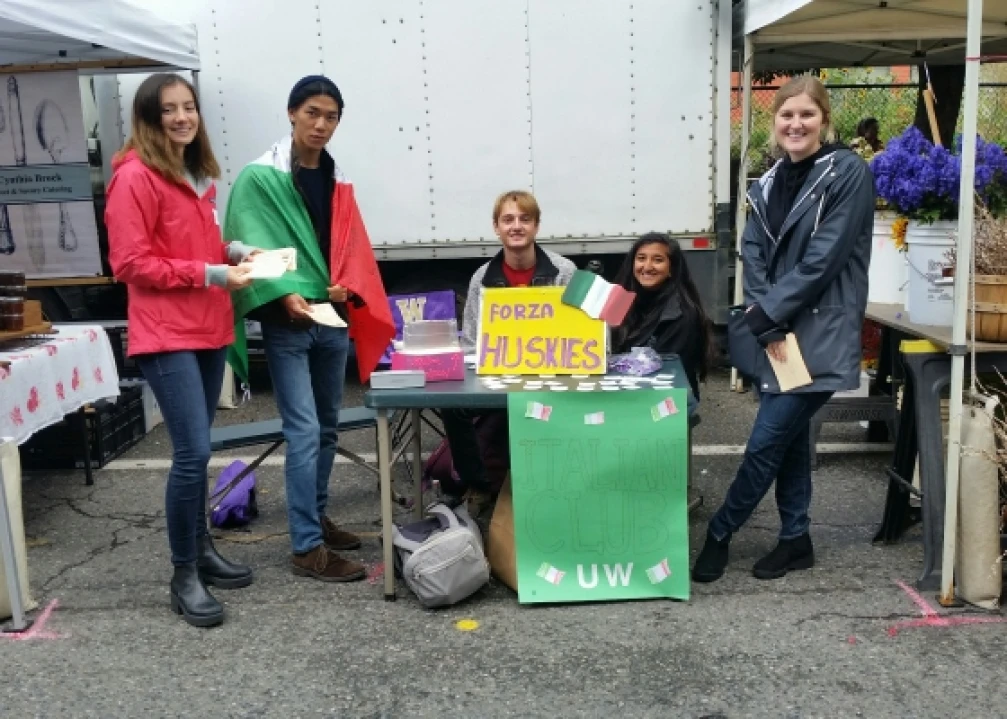 The Italian Club at the UW recently attended the University District Neighborhood Farmers Market and ran a stand to do some community outreach and promote the club. Club officers gave out a recipe cards with classic Italian recipes and mingled with the public and provided information about upcoming Italian Club events. The effort was success with many folks stopping by and signing up to receive information about the club. Below are some more upcoming Italian Club events.