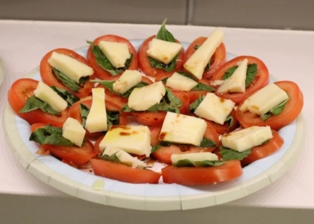 Students from all levels of Italian joined the officers of the UW Italian Club on Friday to prepare a four-course meal together. On the menu was a caprese salad, pasta al pesto, duck breast in orange sauce (petto d'anatra all'arancia), and a mandarin sorbet. Everyone pitched in with shelling, peeling, slicing and boiling to get the dinner ready, speaking a mix of Italian and English and, of course, making a mess.